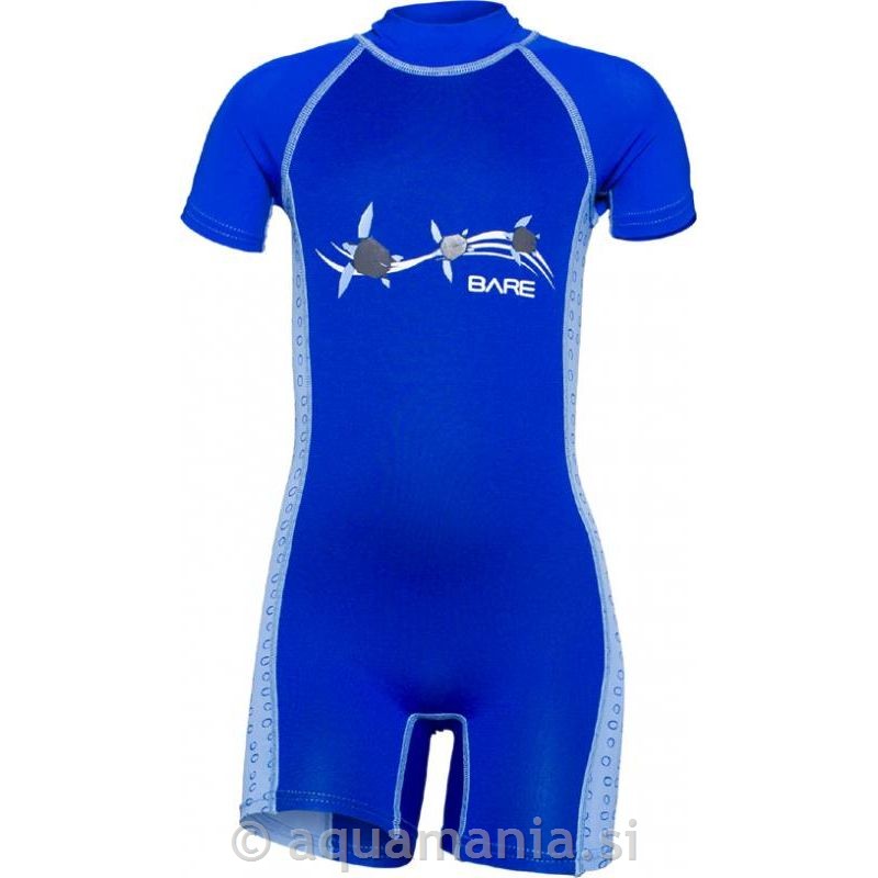 Otroški kratki neopren, debeline 1 mm in preprečuje podhladitev otroka v vodi. Primeren za uporabo v bazenih ali za snorklanje in druge aktivnosti v vodi. Zapenjanje z zadrgo na hrbtni strani.