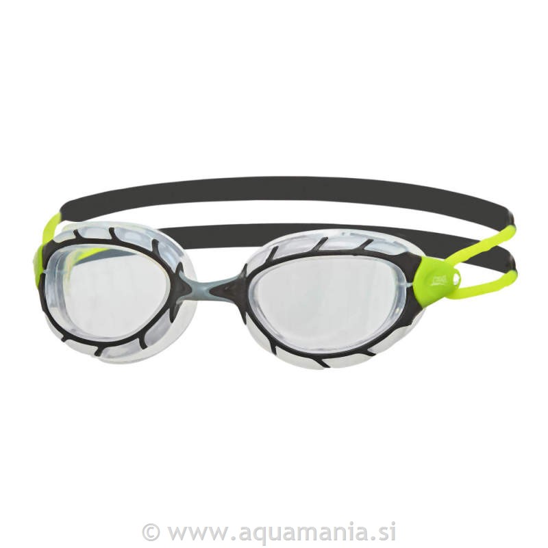 Zoggs Predator plavalna očala so zasnovana za plavalce, ki želijo popolno kombinacijo udobja, stabilnosti in širokega vidnega polja. Zahvaljujoč napredni Predator Wiro Frame konstrukciji in Ultra Fit tesnilu se očala popolnoma prilegajo obrazu, zmanjšujejo pritisk in zagotavljajo izjemno udobje tudi pri daljših treningih. Leče so opremljene z UV zaščito, anti fog premazom in tehnologijo Curved Lens Technology (CLT), ki omogoča kar 180° periferni vid.